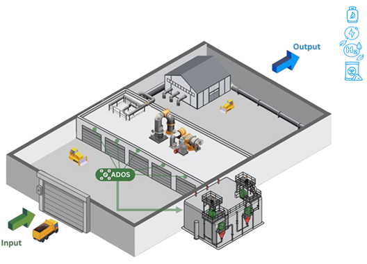 ADOS is Greeneple's breakthrough dry anaerobic digestion technology that transforms high-solid organics into renewable natural gas through an optimized percolation-based process. ADOS can operate with 10-90% organic solids and completes the biogas production cycle in 20 days. This compact, modular system eliminates odor emissions and wastewater generation while delivering superior methane yields, making it ideal for distributed energy applications and community-scale renewable energy projects.